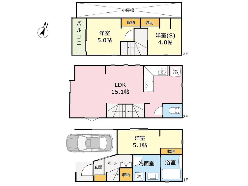 ◆2019年4月築、3階建て3LDK+車庫付き戸建て♪