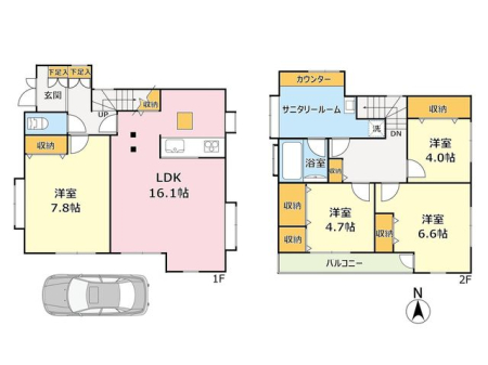 都営大江戸線「練馬春日町」駅徒歩7分、西武豊島線「豊島園」駅徒歩13分。家族構成に柔軟に対応できる、ゆとりの5LDKプラン。